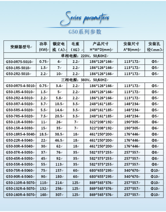 8.提供多達50種的故障保護功能。能在各種異常使用情況下,快速可靠的自動停止輸出,從而保護電機或變頻器自身過電流可能導(dǎo)致的損壞。